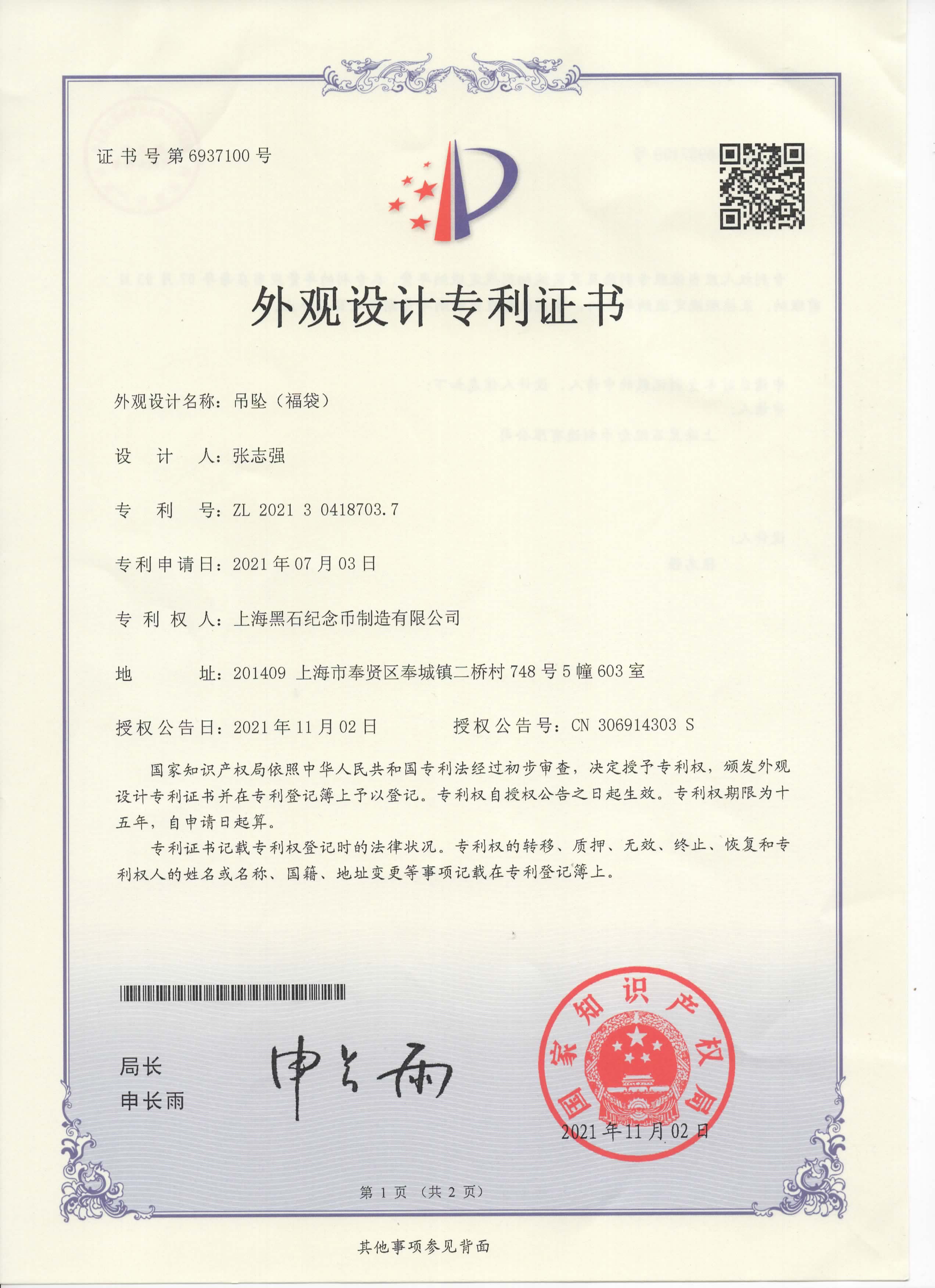 當前位置:首頁 / 關于黑石 / 榮譽資質/證書 / 吊住(福袋)專利